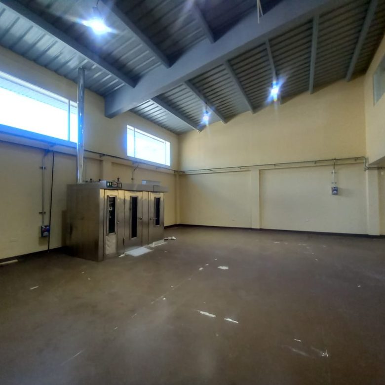 2 bodegas (1 de almacenamiento de materia prima, 1 bodega de distribución) con puertas lanfor y rampa de carga