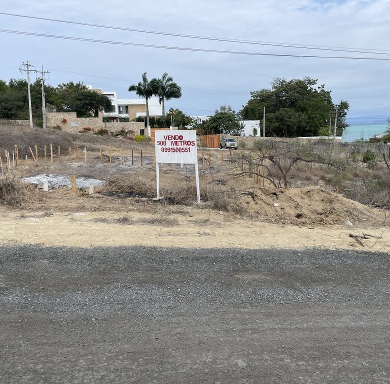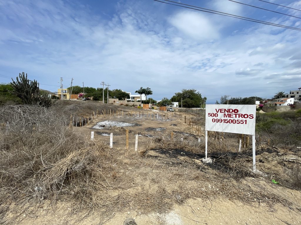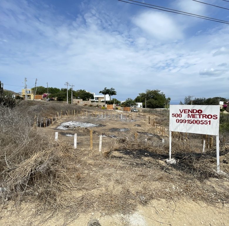 VENDO TERRENO 500 M2 EN PUNTA BLANCA, SANTA ELENA. A DOS CUADRAS DEL MAR.
