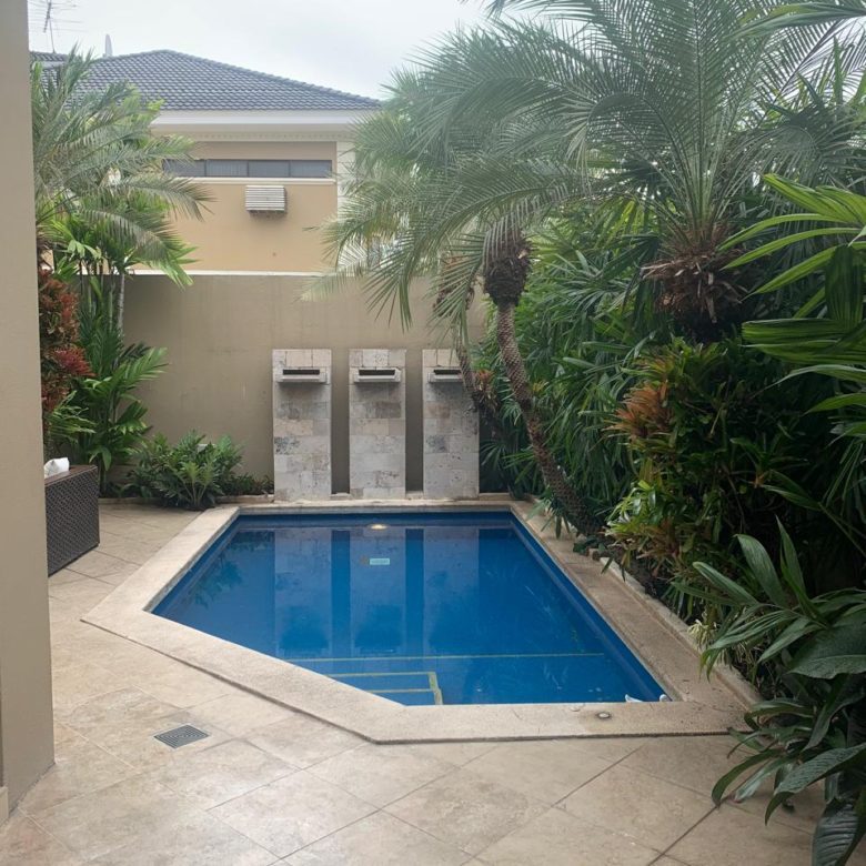 PATIO EN ¨L¨ ZONA DE MUSICA Y/O TV Y PISCINA